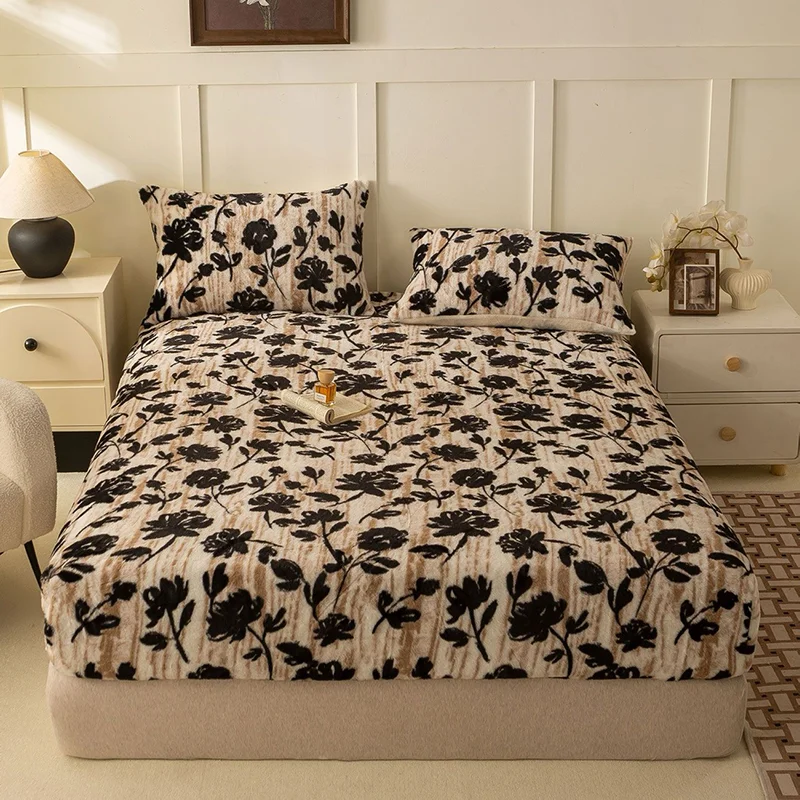 1pc Luxury Velvet Fitted Sheet - Soft, and Comfortable, Machine Washable, Ideal for Winter Bedding, Perfect Gift for Bedroom, Guest Room,Deep Pocket Fitted Sheet Without Pillowcase-2