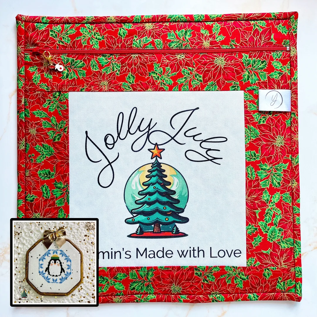 Bring festive cheer to your stitching with the Jolly July Project Bag, a charming handmade accessory perfect for organizing your cross-stitch or embroidery projects. Lovingly crafted in a joyful Christmas theme, this bag keeps your tools, threads, and patterns safe and tidy whether you're at home or on the go.