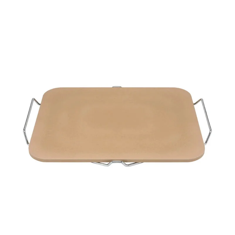 Experience the delicious flavour and perfect texture of brick-oven pizza right from your home oven with the Avanti® Pizza Baking Stone with Rack. Crafted from natural kiln-fired clay, this durable ceramic disc absorbs excess moisture and distributes heat evenly, eliminating hot spots and creating light, crispy crusts similar to those from a traditional brick pizza oven. Versatile enough for baking crusty bread, crunchy cookies, crispy tortillas, and flaky croissants, it also includes a convenient carrying rack for easy serving at the table. Suitable for both indoor and outdoor ovens, this baking stone is ideal for reheating pre-baked items like frozen pizzas, pasties, and pies.