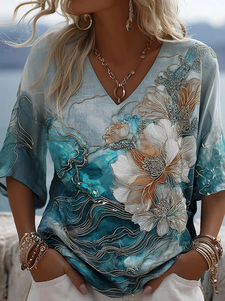 Vintage Gradient Marble Texture Froal Pattern Art Linen Shirts