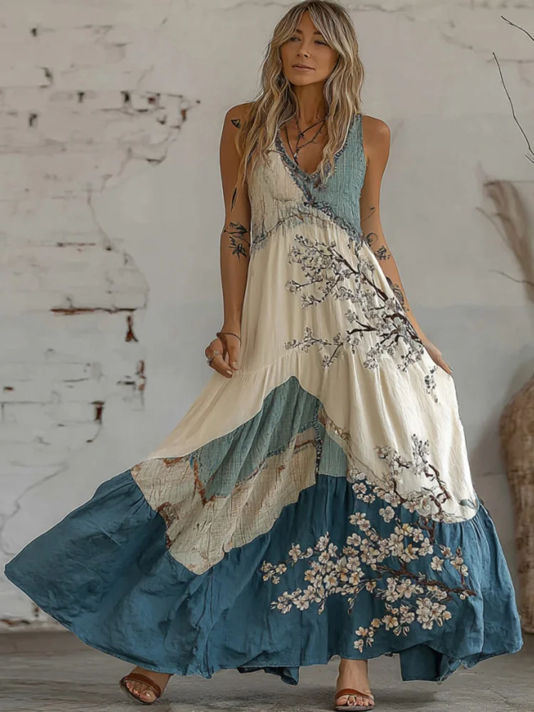 Women's Cherry Blossoms Art Linen Maxi Dress