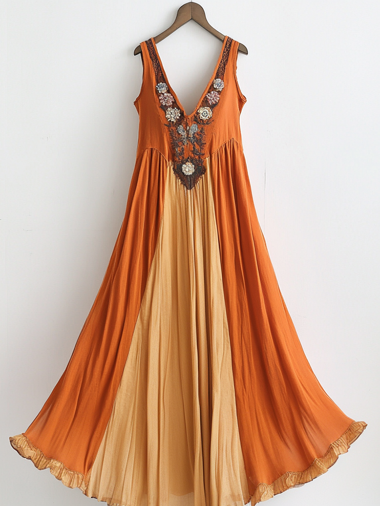 Women's Vintage Bohemian Floral Pattern V-neck Dress