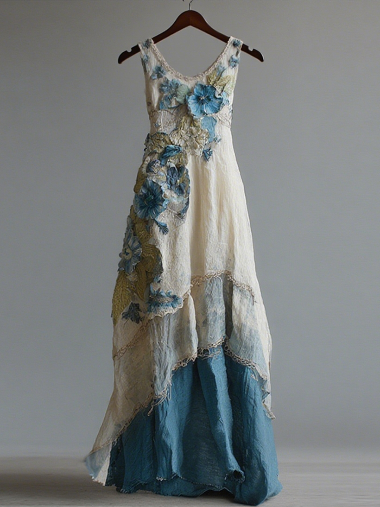 Women's Vintage Oil Painting Floral Art Gradient Linen Sleeveless Dress